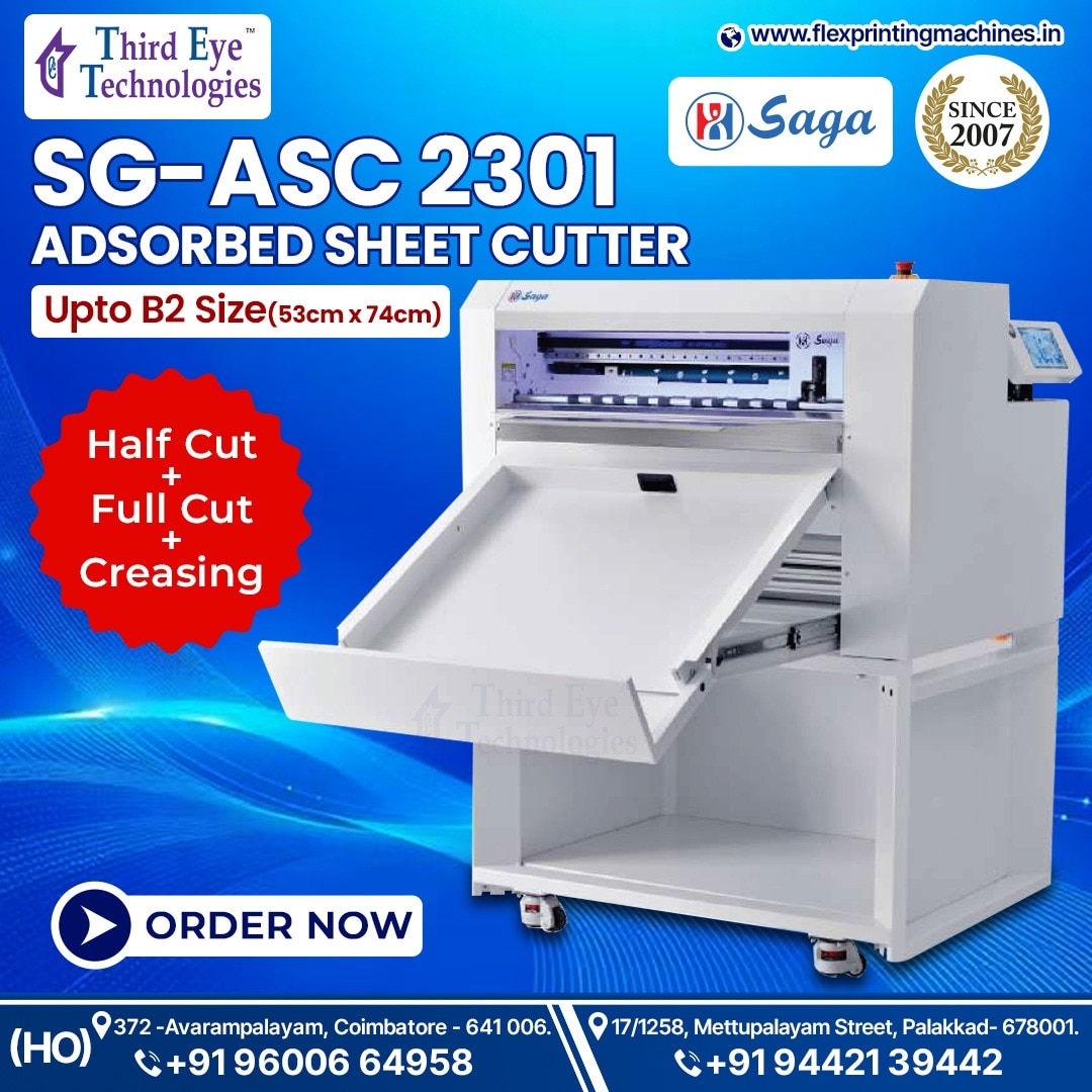 Model name - Saga SG ASF 420 ,Width :- 490mm x 710mm ,Maximum cutting size - 430mm x 672mm ,Scanning Speed :- 5-10 s ,Cutting Speed :- 10mm/s - 70mm/s ,Feeding size :- A2 (420mm -594 mm) ,Sheet feeding speed : 2-6 pcs/m ,Paper Weight :-60g ,Working Power :- 700 w Cutting media :- Self adhesive sticker ,cardboard , Corrugated paper etc. ,Software :- Coreldraw / illustrator plugin /Cut studio