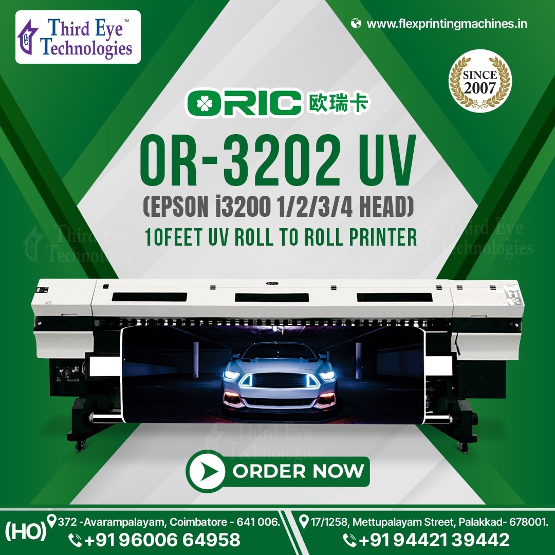 UV roll to roll machine | Third Eye Technologies From Coimbatore Contact Now Oric UV Roll to Roll printer Upto 1440dpi EPSON i3200 print head Bed Vacuum IR heater Drier fan